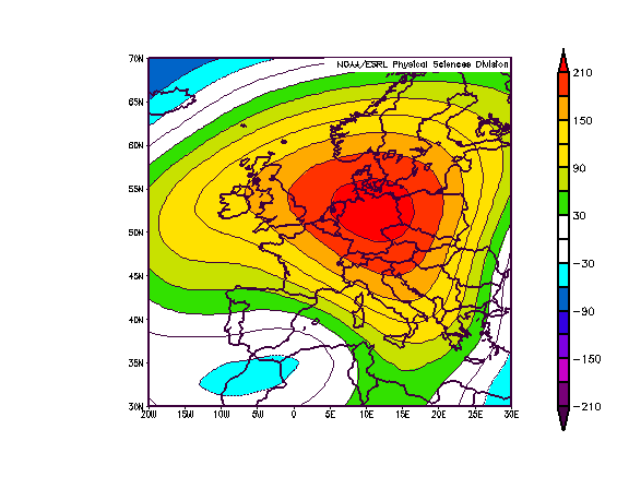 E' chiara ed evidente una rimonta anticiclonica sull'Europa, con i massimi dell'anomalia sul Centro Europa. Rimonta anticiclonica subtropicale, stimolata anche dalla depressione marocchina.
