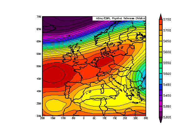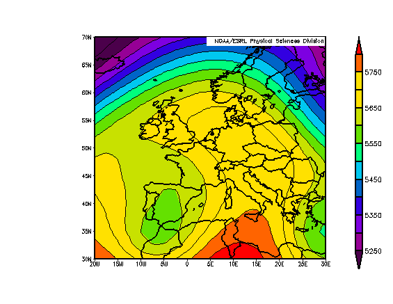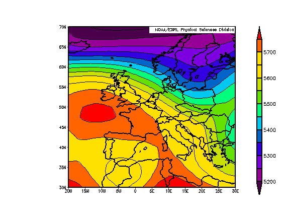 Goccia fredda dopo 2 giorni in lentissimo spostamento verso est, ora tra Algeria e Sardegna. Continua l'afflusso di correnti calde meridionali sull'Europa.