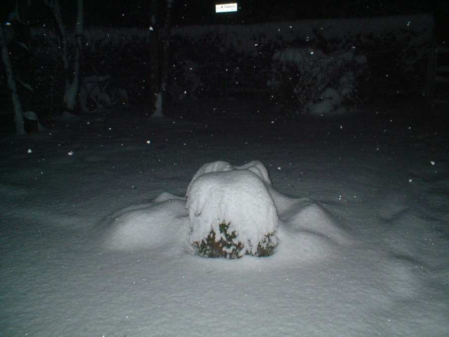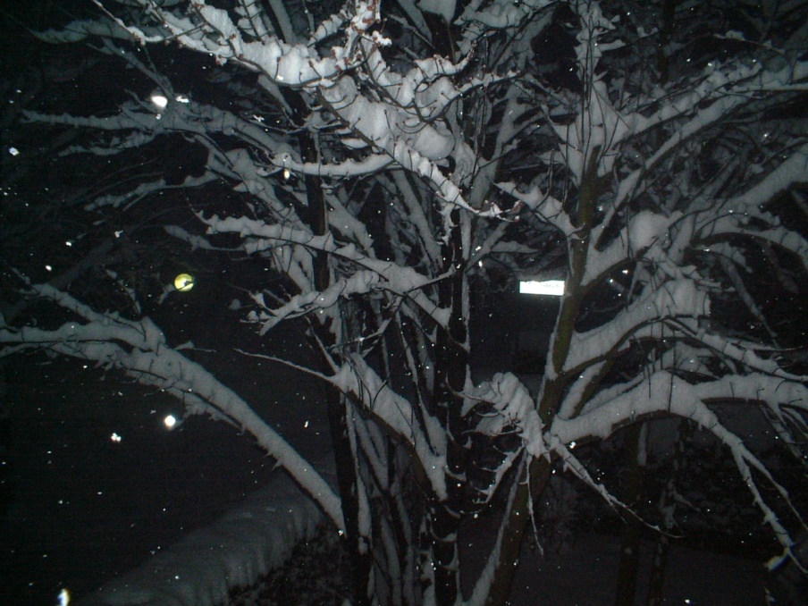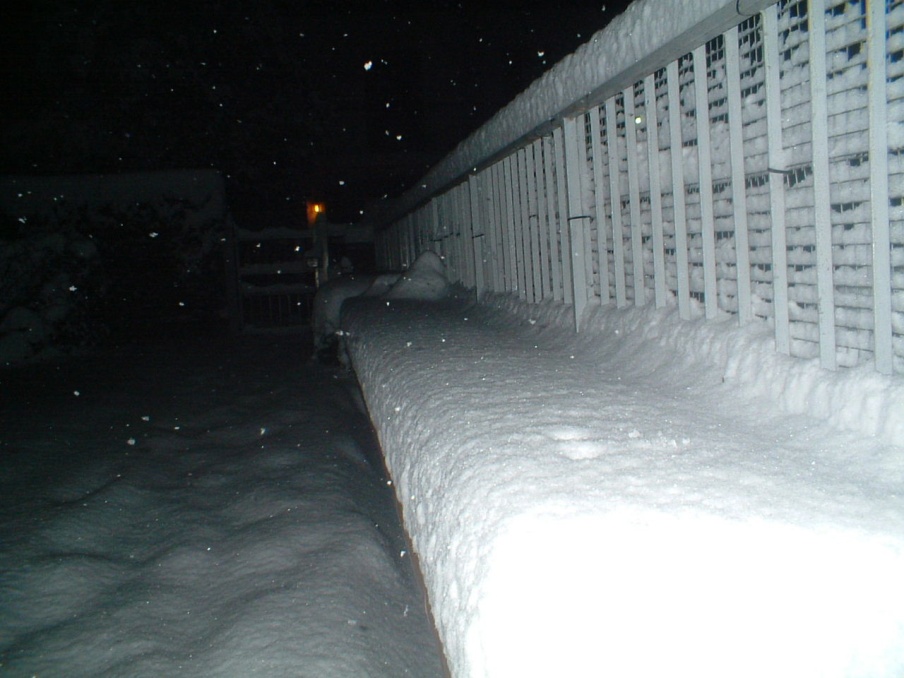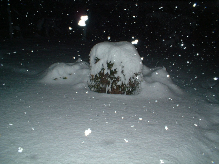 Verso mezzanotte l'intensità incomincia a scemare, ma ormai si sono già raggiunti i 20cm! E la nevicata si può dire che tutt'altro che conclusa, senza contare che ci sono ancora -2.1°C.