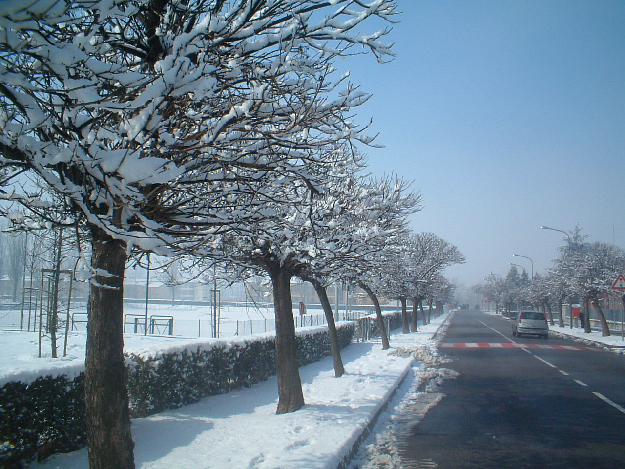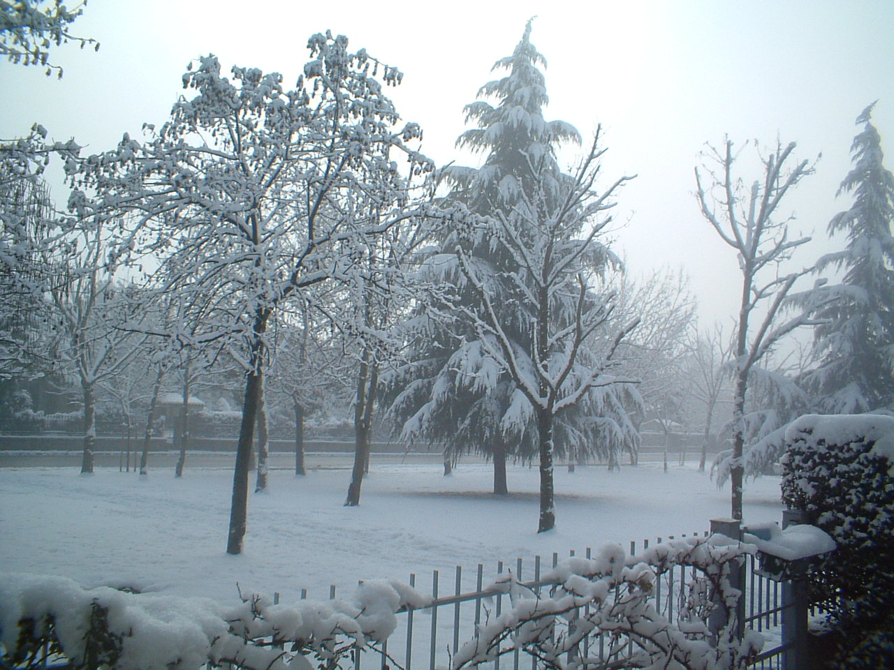 La nebbia verso le 10 incomincia a diradarsi, ma la temperatura č ancora di -3.0°C!! Il manto nevoso resiste compatto al suolo e sugli alberi: